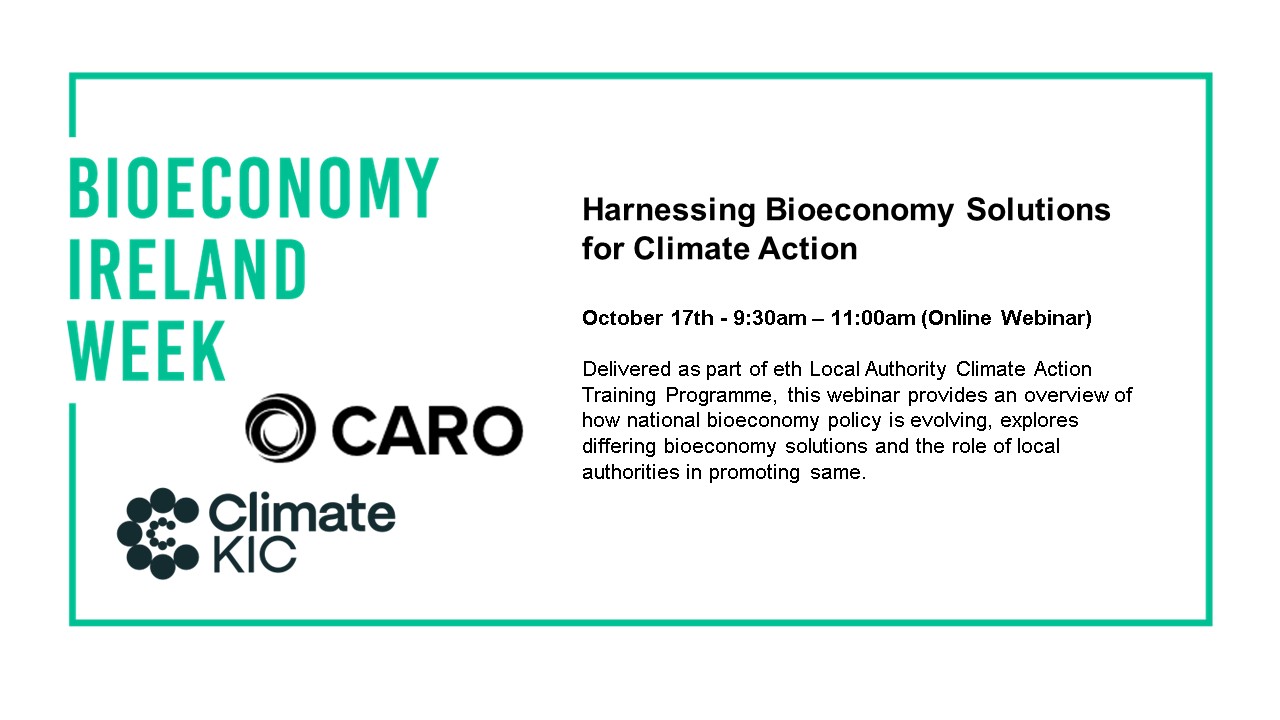 Delivered as part of eth Local Authority Climate Action Training Programme, this webinar provides an overview of how national bioeconomy policy is evolving, explores differing bioeconomy solutions and the role of local authorities in promoting same.
